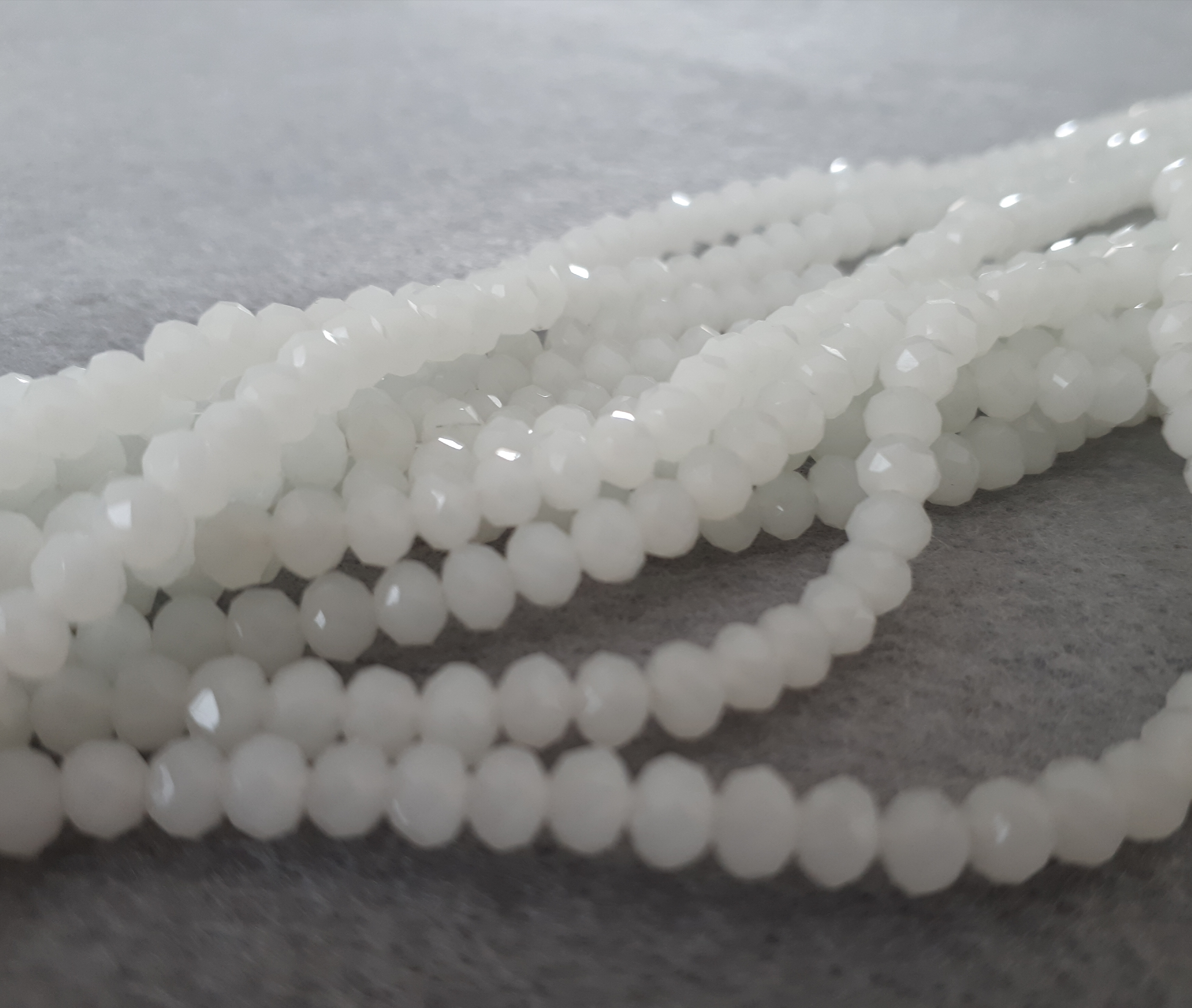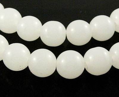 Glas kralen per steng van 35 cm, ong. 44 stuks, Rond, Wit, melkachtig.