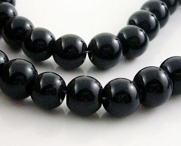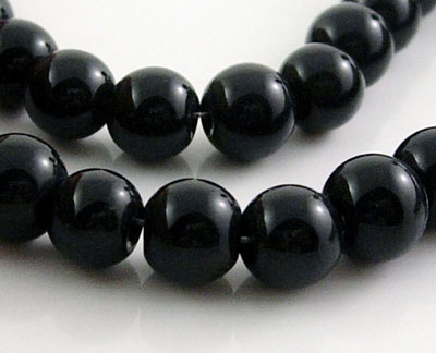 Glas kralen per steng van 35 cm, ong. 44 stuks, Rond, zwart.