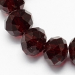 Glas kralen per steng van 35 cm, ong. 44 stuks, Rond, wijn rood doorschijnend.
