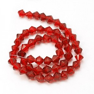 Helder roce glaskralen, doorschijnend, bicone-vormig, ong 70 stuks per streng...