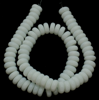 Platte ronde kraal van melkwit glas, gatgrootte1mm.