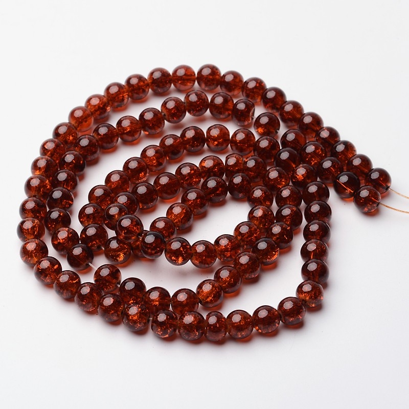 Glaskralen rond 8mm, donker oranje, crackle per 20 stuks of per streng van ong 100 stuks.
