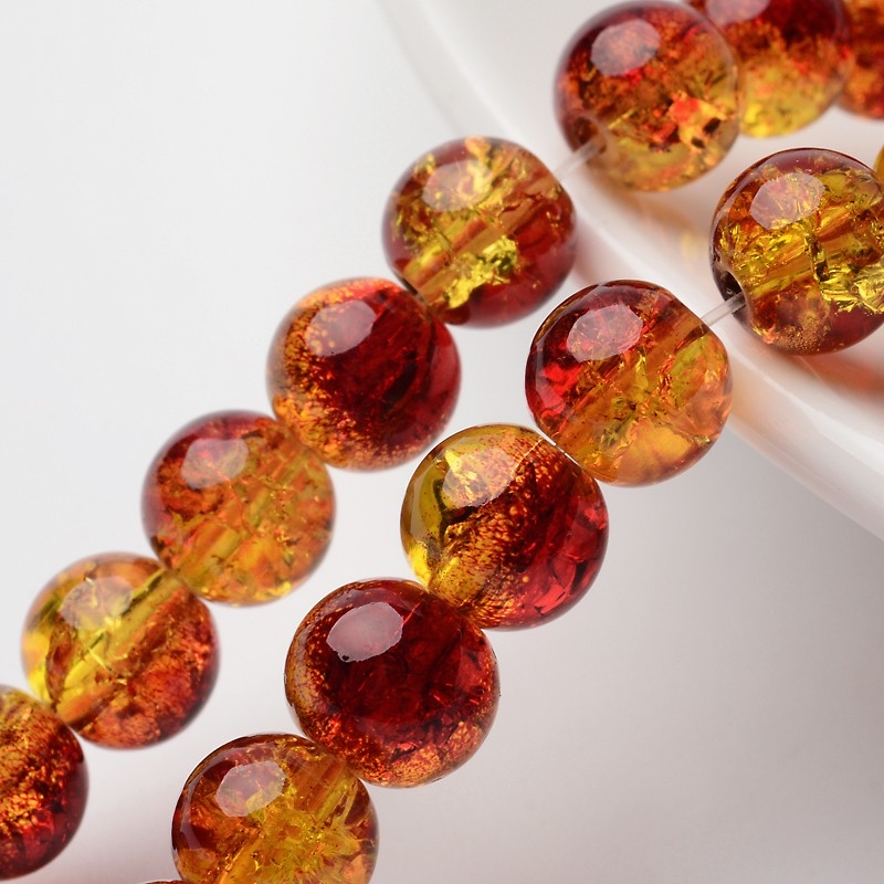 Mooie galskralen, crackle, 8mm, rood-oranje, Een streng bevat ong 100stuks.
