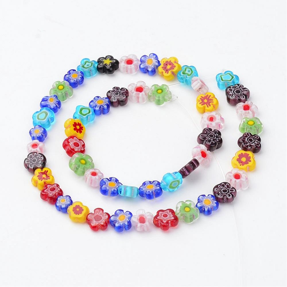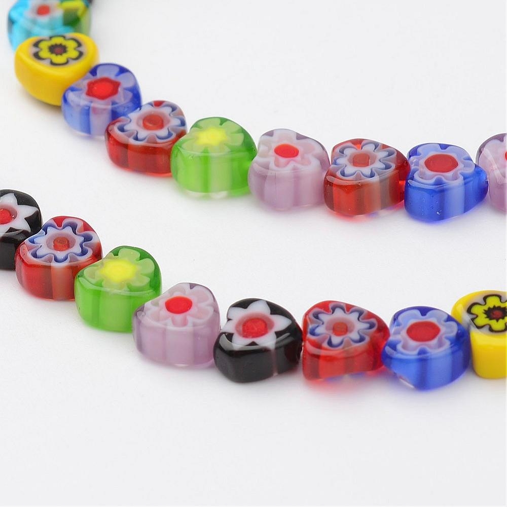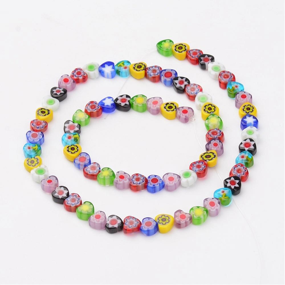 Kleine millefiore hartjes, gemengd van kleur, per kraal een bloempatroon, Maat 6x6x4mm. Gatgrootte:0,5mm, lengte van de streng 40cm.