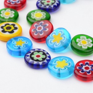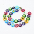 Handgemaakte Millefiori kralen Enkel bloem design, Plat rond, Maat: ong 14mm in diameter, 4mm dik, Gatgrootte: 1mm; ong 30st per streng van 40 cm.