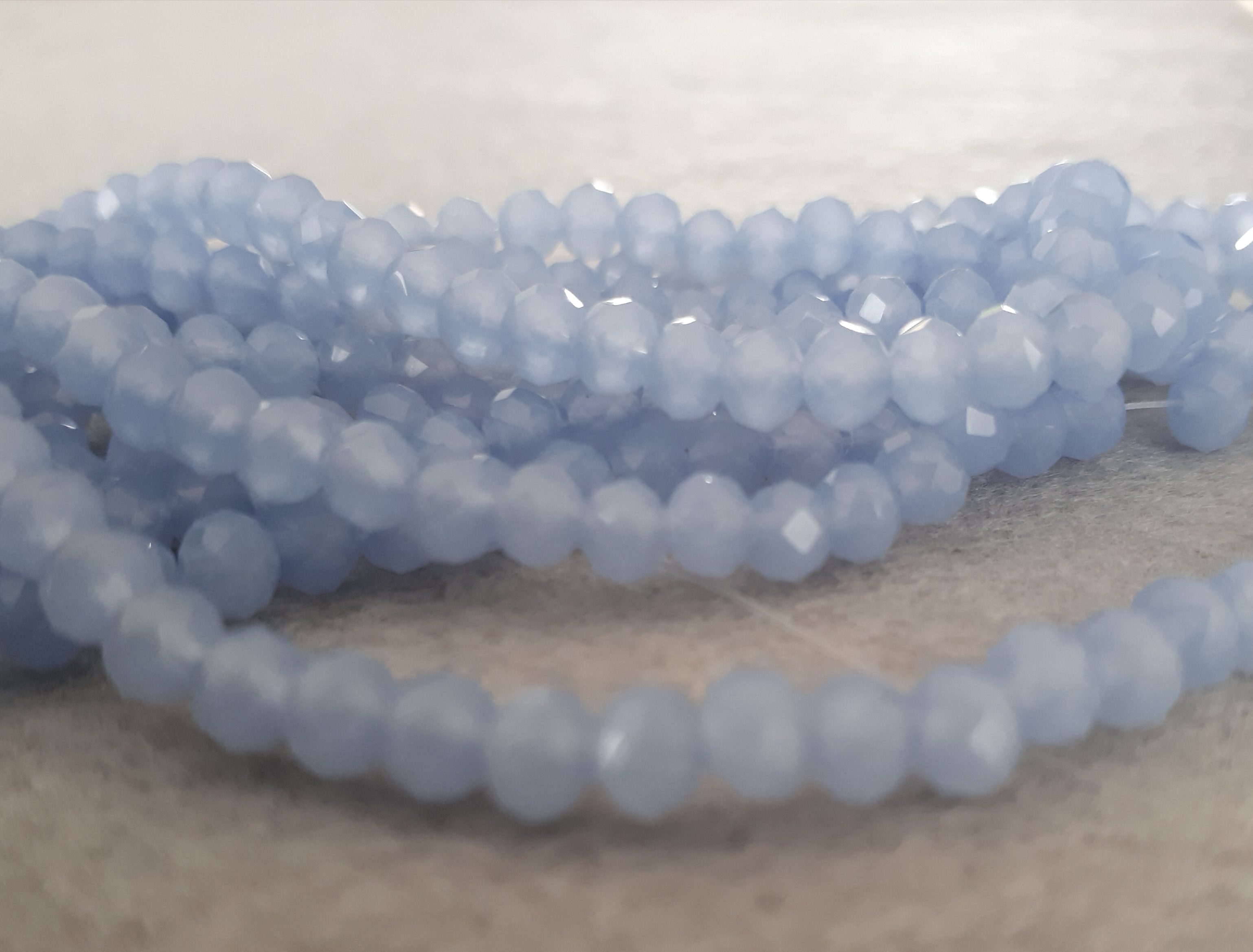 Glas kralen per steng van 35 cm, ong. 44 stuks, Rond, lichtblauw, melkachtig.