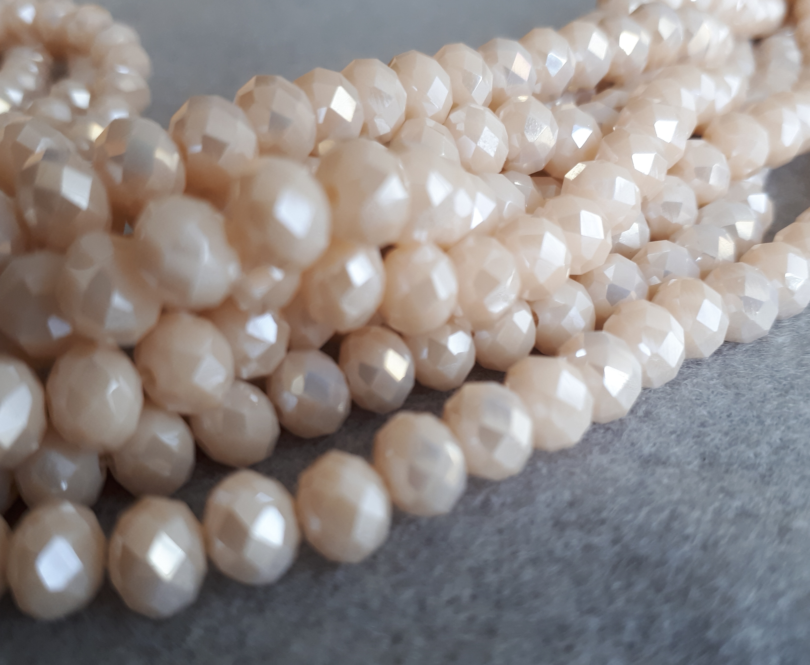 Prachtige facet kralen, ecru hoogglanzend en gegalvainiseerd, pareleffect.