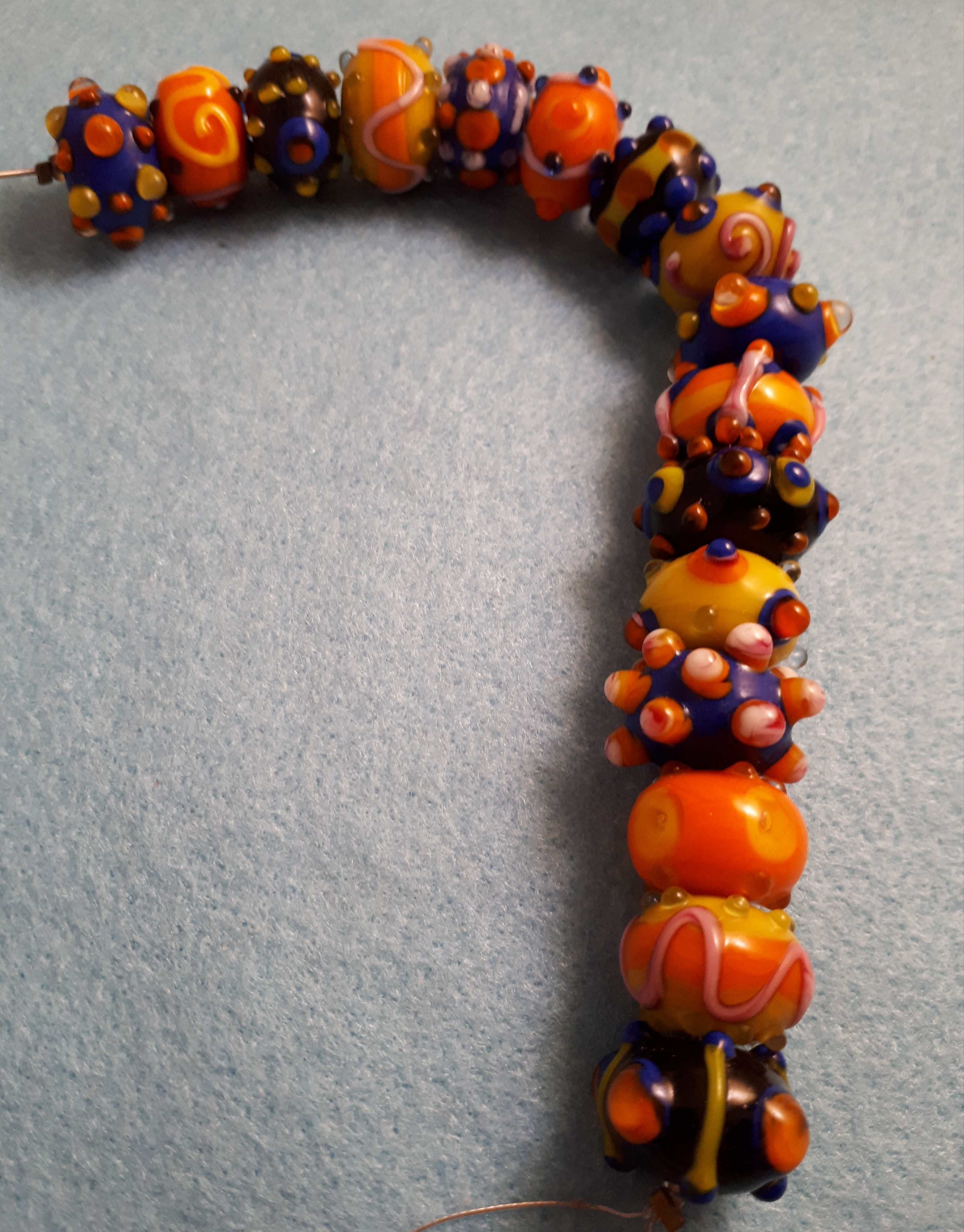 Prachte handgemaakte glaskralen, in zeer sprankelende kleuren, per streng met 20 bewerkte kralen...