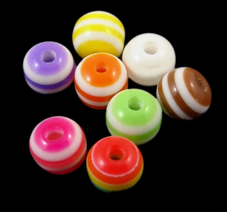 Deze prachtige gekleurde kralen hebben een doorsnee van 8mm en een gatgrootte van 2mm. Leuk om bijvoorbeeld te verwerken in kinderarmbandjes van nylonkoord waarin ze als shambala kralen worden gebruikt.