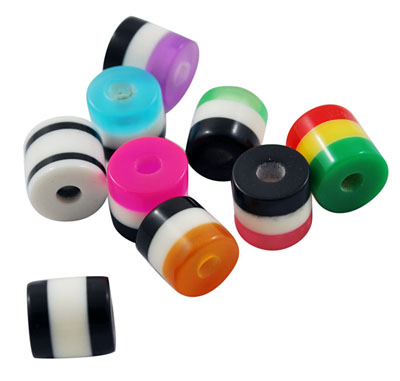 Deze harskraaltje zijn prachtig gelaagd en zeer kleurrijk. Ze zijn 8 x 8 mm met een gatgrootte van 1,5mm.