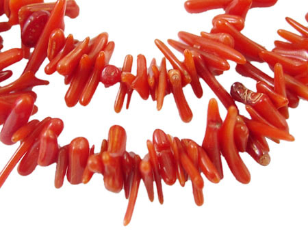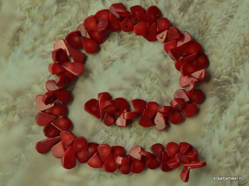 natuurlijk koraal, diep rood nagekleurd en verhit.
