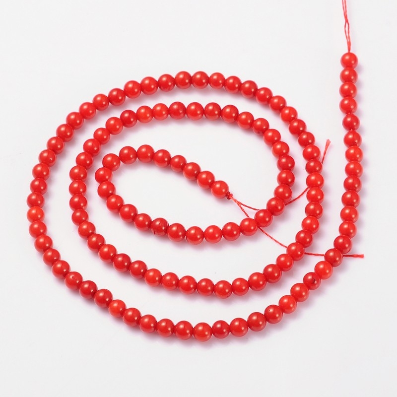 Kleine koraalkraaltje 3mm per streng ong 123 stuks. Mooie warme kleur.