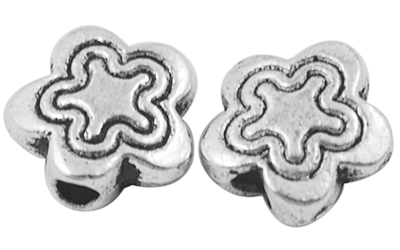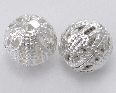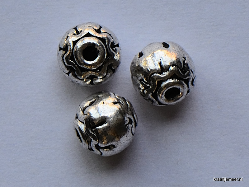 Filigraan kralen, messing, zilverkleur. Maat: diameter 8mm en gatgrootte: 0,8mm.