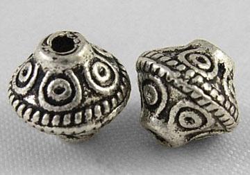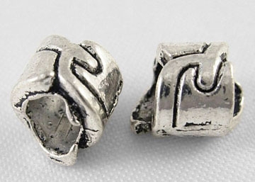 Tibetaans zilveren kraaltje, 7mm breed, 6.5mm hoog, gatgrootte: 1mm.