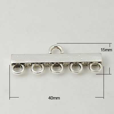 Metallen eind verdeler, rechthoekig, strak, zilverkleurig Lood vrij & Nikkel vrij, Antique zilver Maat: 15mm hoog, 40mm lang, 4mm dik, Gatgrootte: 3.5~4mm.