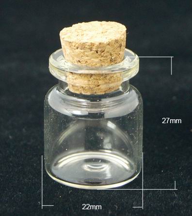 Dit flesje is 27mm hoog, 22mm breed. Ik de kurk kun je een oogschroefje draaien, zodat je er een hangertje van kunt maken.