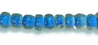 Deze rocailles zijn doorzichtig en in het midden zit een aqua kleurige kern. Ze schitteren daardoor meer dan transparant gekleurde rocailles.