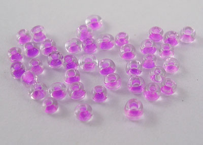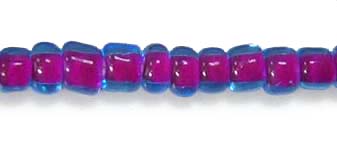 Deze rocailles hebben een transparant blauwe buitenkant en een fuchsia kern, ze hebben hierdoor een bijzondere uitstraling.