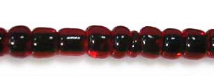 Deze rocailles hebben een helder rode transparante buitenkant met een bordaux rode kern. Hierdoor krijgen ze bijzondere granaat-achtige uitstraling.
