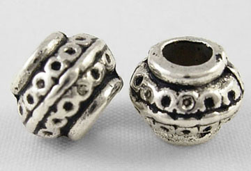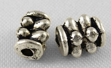 Tibetaans Zilveren spacer, loodvrij en Nickelvrij, rond 5.5mm lang, 4mm breed, gatgrootte: 1.