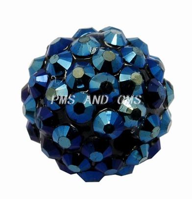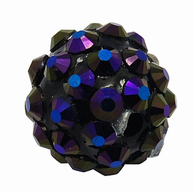 Deze kralen, zijn van taiwaneese hars gemaakt en bezet met facetsteentjes. Ze zijn donker donker blauw en 14mm in doorsnee.