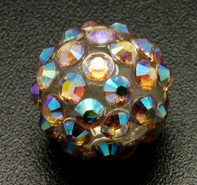 Deze kralen, zijn van taiwaneese hars gemaakt en bezet met facetsteentjes. Ze zijn licht camelkleurig en 14mm in doorsnee.