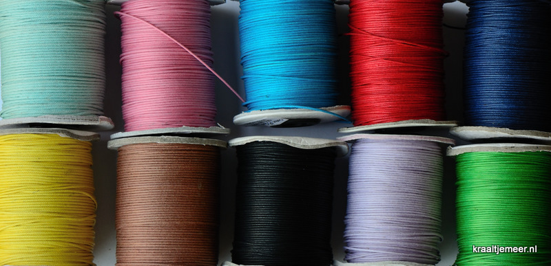 Waxkoord is prachtig materiaal om kettingen en armbanden mee te maken. Zowel om kralen te rijgen en door knopen op verschillende plaatsen van het koord te laten zweven als voor het knopen van armbanden.