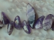 De strengen bevatten kralen tussen 15mm en 25 mm lang. Een streng is 40cm lang en weegt ong. 125 gram. Ong 45 kralen per streng. De kleur is paars met af en toe een beetje grijs. Verder is er nog een tweede afbeelding te vinden onder afbeeldingen en video's