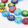 Millefiori, cirkelvormige kralen, enkel bloemdesign, gemengde kleur, per streng